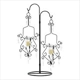 Candlelight reflects from countless crystalline facets, turning this bejeweled candleholder into a shimmering fountain of light. Graceful coils of twisted wire form a dramatic cradle for two free-swinging candle cups. A winning example of old-world artistry, warmed by a halo of golden glow! Wrought iron and glass. Candles not included. 11 3/8" x 6 1/4" x 18 3/4" high.