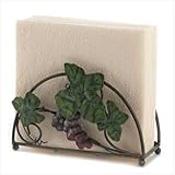 Rich purple grapes and lush green leaves adorn a graceful metalwork napkin caddy, handsomely keeping your serving essentials right at hand.Metal and wire. Napkins not included. 6 1/2" x 3 3/4" x 4" high.