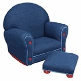 This Denim Rocker with Ottoman Set is just like mom and dad's furniture ? only kid-sized. With padded, thick cushioning our rocker is a comfy place for kids to read stories, play let's pretend, or just relax with their feet up. Appropriate for children ages 18 months to 4 years old.