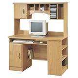 This spectacular office system offers lots of storage space and privacy to provide you with a very tidy office environment. The Honey Oak finish fits right into any decor. 1 fixed shelf underneath the keyboard tray 1 designated space for CPU with open back for wiring and 1 adjustable shelf behind the door Bookcase on the side of the unit has 2 adjustable shelves for optimal storage Interchangeable CPU unit and bookcase Rounded cross moulding on the hutch 4 storage cases in the hutch CD rack in black finish holds 27 CDs Hutch has 1 large open storage case that is perfect for binders Manufactured from engineered-wood products 5-year warranty