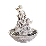Fanciful cherubim splash and play, sending sparkling cascades of water from bowl to bowl. River stones and pump included. For indoor use only. UL Recognized. Stone-finish alabastrite. 12" x 12" x 14" high.