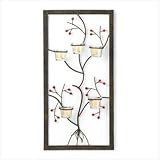 A study of sophistication and elegance, this decorative sculptural piece with a freeform vine design creates a wall of soft candlelight. The antiqued bronze color frame with embossed pattern perfectly outlines the beautiful silhouettes created as the candlelight reflects off the red "berries." Five clear glass votive holders accommodate standard votive candles, sold separately. For indoor use