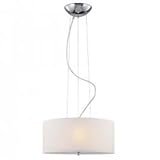 Light a dark area of your home with this attractive, well-shaped ceiling fixture. The round, white craft paper shade houses three bulbs while the hardware features a chrome finish. Chrome finish. White, fabric shade. Round shape. Takes three 60 watt bulbs (not included). 18" wide. 71" high.