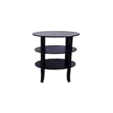 Three-Tier oval end table provides plenty of room for display or storage.Constructed of medium density fiberboard, and solid wood.It measures 24 inches long by 18 inches wide by 24 inches high.