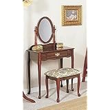 Want to buy Traditional Cherry Finish Wood Vanity Table, Mirror & Stool/Bench Set at other amazon sites? Click the corresponding icon below:
