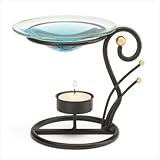 Sinuous curls of matte black wrought iron provide a striking counterpoint for a sparkling glass oil dish. A tealight gently warms your favorite scented oil for a delicately fragrant glow! Metal with glass cup. Tealight and oil not included. 5 3/4" x 4 5/8" x 5" high.