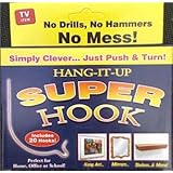 Hang-It-Up Super Hooks (20 Hooks)Say goodbye to your hammer and nails. Now you can hang pictures, mirrors, shelves or more FAST, EASY, and more SECURELY than every before. With these clever little hooks, all you do is just position, twist, turn and voila!! No drills, no hammers, no mess. Set of 20Works on drywall, plaster or paneling. Perfect for home, office, or school.