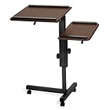 This fully-adjustable laptop stand goes beyond what you'd expect! Use the split-level stand as a presentation or lecture stand, laptop computer stand, audio/visual platform, reading stand, or as an over-the-bed table for hospitals or home care. The two platforms' angles adjust independently, and adjust in height together from 26" to 39.5" from the floor. Rails at the top and bottom of each platform keep items from rolling off. This rolling laptop desk includes casters for easy mobility, and will lock when stability is needed. With a lightweight metal frame, and scratch-resistant thermofused melamine surface, this lap top stand can go anywhere!Available in 4 styles of frame and surface; choose from Black frame with Cherry top, Silver frame with Cherry top, Black frame with Mahogany top, or Silver frame with Maple top. Weight capacity is 100 lbs. The unit itself weighs 24 lbs. Assembly level/degree of difficulty: No Assembly Required.