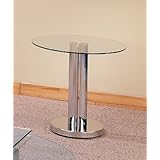 Contemporary Chrome Metal Leg Base Coffee Side/End Occasional TableThis is a brand new side table with Chrome plated metal legs and round glass top.This is an elegant piece that was inspired in design by the great designers that inspire retro to modern style furniture.The Simple double barrel leg structure with chrome plating says it all about the style and design of this table.Specifications- Dimensions: 23"L x 23"W x 21 1/4"H- Style Type: Modern Retro- Materials: Metal/Glass- Color: Chrome- Pieces: 1- Finish: ChromeAdditional Information:Manufacturer - visiondecorInstructions - Requires Assembly