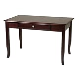 I shopped for months for the "right" affordable desk for our small office (converted from one of the bedrooms).I didn't want a cheap lightweight desk.Instead, I wanted a classy looking one that would work well with our existing medium to dark cherry wood furniture and one that was around 46-48" wide.(I actually had a hard time finding something I liked in this width; most desks/writing tables that caught my eye were way wider or even smaller.)I needed one that I could use for comfortably for writing (with space to spread out some books and files) as well as computer usage (mainly just to fit a keyboard and monitor as I have the hard drive sitting in a cabinet of sorts on the ground next to the desk). I didn't want side drawers to maximize space for me to move around.Further, I wanted nothing to obstruct the legs on the far end because I want to have just enough space to allow my 6 year old to sit across from me and color or do homework on occasion when I'm using the desk.I actually found this desk on another online store site (with good reviews) for less money than Amazon.However, because I have had excellent service from Amazon with respect to return goods, I decided to pay more for peace of mind in case this desk turned out to be a dud.My spouse installed this in under 1/2 hour and said it was fairly straight-forward.I initially was disappointed to find the drawer looked like a regular pull out drawer for storage of stuff that had a front panel around 4 inches deep (but the actual storage space of the drawer is only around 2 inches deep), wondering how awkward it would be to insert/remove a keyboard in it.(Before buying, I had read mixed descriptions for this desk's drawers; some sites mentioned just a drawer and others mentioned a keyboard try.I took a chance on this aspect.)Then I discovered that the entire front panel of the drawer pulls down so you have a flat bottom to slide the keyboard in/out.The front panel is connected to the side of the drawer by magnets.I can't comfortably type while the keyboard is in the drawer, though, as it is too low for me, and I'm about 5'7".I slide the drawer out and put the keyboard on top of the desk to type; and hide it away when I need a desk for writing.I do have one of those office task chairs with adjustable heights, and I need it at the highest level to type comfortably with the keyboard on the desktop.However, someone at least a few inches shorter than I am should be able to just keep the keyboard in the drawer/tray while typing.I was also able to pull my computer speaker cable and table lamp cord through a space between beams underneath the desktop all the way across the desk to reach the computer and outlet on the opposite side; since I have a cabinet right next to the desk to further hid the cable/cord from sight, my desktop is not cluttered with ugly cords.