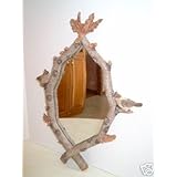 WOW! WHAT A DEAL ON A NICE QUALITY MIRROR!NEW IN ORIGINAL FACTORY PACKAGING1ST QUALITY MADE OF DURABLE RESIN REAL GLASS MIRROR12 " X 17 "This woodsie mirror is the perfect accent for your deep woods cabin or your lodge-style bathroom. It has a very realistic, rustic feel. There are two little birds perched on either side of the mirror. The frame looks like two twigs freshly plucked from the forest floor. They have amazing detail, complete with buds, leaves, and bark. This mirror will look great in the den or at the fishing cabin. It measures 1 foot wide and is 17 inches tall. A picture hook is securely fastened to the back for easy hanging. This cute mirror is made of heavy-duty resin and is very nicely made. This item comes brand new in styrofoam. These go for $29+ Each in stores and catalogues, if you can find them, so don't miss this deal!! Very Ornate!