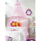 The product description said the canopy had "pink butterflies" and the photograph looked white with pink trim.However, the product is *all* pink, and not nearly as light as the photograph implies.It's PINK.And the butterflies are cheap plastic.The "fabric" is soft and would be pretty in a little girl's room, but that's not what I needed it for.I'm going to return it.Click Here to see more reviews about: BUTTERFLY BED CANOPY