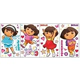 I was looking for stickers for a girls bedroom wall that can easily be removed time and time again. I bought the Dora the Explorer Self Sticker Room Appliques (52pc) set.I was throughly thrilled to have so many large Dora stickers for the room, plus other appliques along with it. They were easy to attach and remove them, if we wanted to change them. The stickers were so easy that the girls enjoyed putting them all around the room too. These appliques are so easy, anyone can do it. I would buy more in the future, it adds a little POP to the room. Amazon made shopping for these easy.Click Here to see more reviews about: Dora the Explorer Self Sticker Room Appliques 52 Pc