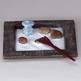 34638 Zen Garden in miniature includes a square dish, white sand, three stones, mini pagoda, and rake. 7 1/4" x 7 1/8" x 1 3/4" high. Set. Exclusive.