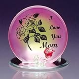 Tell Mom just how much she means to you with this glass plaque candle holder, inscribed with ôI Love You Mom. A glass rose is also displayed. Mirror base. 3 1/2 diameter x 3 3/4 high.