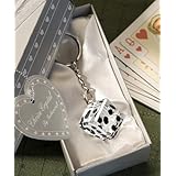 Share the lucky couple's happiness with a dice keychain favor that wins guests over, a Choice Crystal by Fashioncraft exclusive.With Las Vegas-style weddings and showers on a hot streak, it's a sure bet that this chrome keychain with crystal dice makes a fabulous favor.The keychain, from the popular Choice Crystal from Fashioncraft line, measures 3 « x 1 x ? , includingclear crystal dice with plenty of suave appeal.Comes in a stylish silver deluxe box, 4« x 2 x 1 1/8, embellished with a heart design.An organza bow and attached matching thank you tag wrap up the sizzle