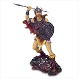 A blond giant looses his battle cry as he shakes his spear overhead, sparking mortal fear in the enemy forces! Youll marvel at the lifelike look of this noble warrior king! Polyresin. 4 3/4" x 7" x 8 3/4" high.