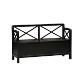 Whether your style is traditional or modern the stunning Antique Black finish on the Anna Storage Bench will blend seamlessly into your decor. Create added seating and storage to your foyer or mudroom with this attractive and functional Warwick Storage Bench. Double X back provides additional support and appeal. Conveniently store shoes, gloves, or toys under the lift top bench.