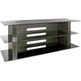 Keep your audio-video components in one place with this Versatile Black Finish Audio Video System. It can hold most 52" flat panel televisions and up to four components and a center channel speaker. Its tempered black safety glass is great if you have kids or pets. Wires and interconnect cables can be hidden with the integrated Bell'O Cable Management System. The open design offers plenty of ventilation for the largest components of your TV or home-theater system.