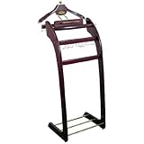 Suit yourself with this classic executive valet stand that's designed to keep you looking your best. Mornings will go smoothly thanks to your helpful clothing butler, which keeps an entire outfit perfectly organized, wrinkle-free and ready for you to put on: Suit jacket and trousers hang in place, 10 ties or belts are stored, 2 more have on-the-go tie holders and 2 pairs of shoes fit on the base. There's even a handy tray for holding your wallet, spare change, watch and jewelry. This handsome, L-featured valet stand is made of solid Chinese Hardwood with a mahogany finish, similar to Maple and complements the decor in your bedroom or dressing area. The valet features a detachable hanger with a brass knob on top and an extra ribbed pants bar for easy suit storage in a closet. Assembly required. .