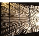 This 7 panel metal wall sculpture by artist Ash Carl will mesmerizeyou and your guests!The handsanded finish on the metal creates a unique 3 dimensional effect.As you pass by, the artwork seemingly 'moves' by reflecting any light in the room.Lighting brings out amazing movement and texture in each panel! The metal and it features an amazing array of detail.These pieces cannot be justified by pictures. The reflections that are hand carvedinto each piece can only show there best qualities in person.If you are looking for other color combinations, check out the other 80 designs of metal wall art by Ash Carl.Ash's artwork is collected by thousands worldwide and is MADE IN THE USA!