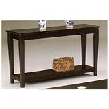 This is a surprisingly solid piece of furniture that looks really good.I wish there were more color options, as I really wanted an espresso finish, but the dark brown look is just fine.The Shelf on the bottom is very sturdy and there is no wobble at all in this furniture.As a bonus, it came packed like a tank.Took a while to get out of the box (it was double boxed with spray in foam around it), but that helped protect it really well during shipping.COnsidering I looked at higher priced items and this was as good or better quality than all of them, I could highly recommend this.Click Here to see more reviews about: Elegant Occasional Sofa Table In Cappuccino Finish