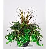 Make a statement with this lush mixed greenery centerpiece. Flowering grasses are centered among a mixture of pothos, ferns, and spider plants. Each arrangement is securely "potted" in a simple round contemporary ceramic planter (colors available: white, black, brown). The overall dimensions are measured leaf tip to leaf tip, base of vase to tallest leaf tip: 26" diameter X 24" high. Measurements are approximate, and will be determined by your final shaping of the plant upon unpacking it. No arranging is necessary, only minor shaping, with the way in which we package and ship our products. This product is only recommended for indoor use.